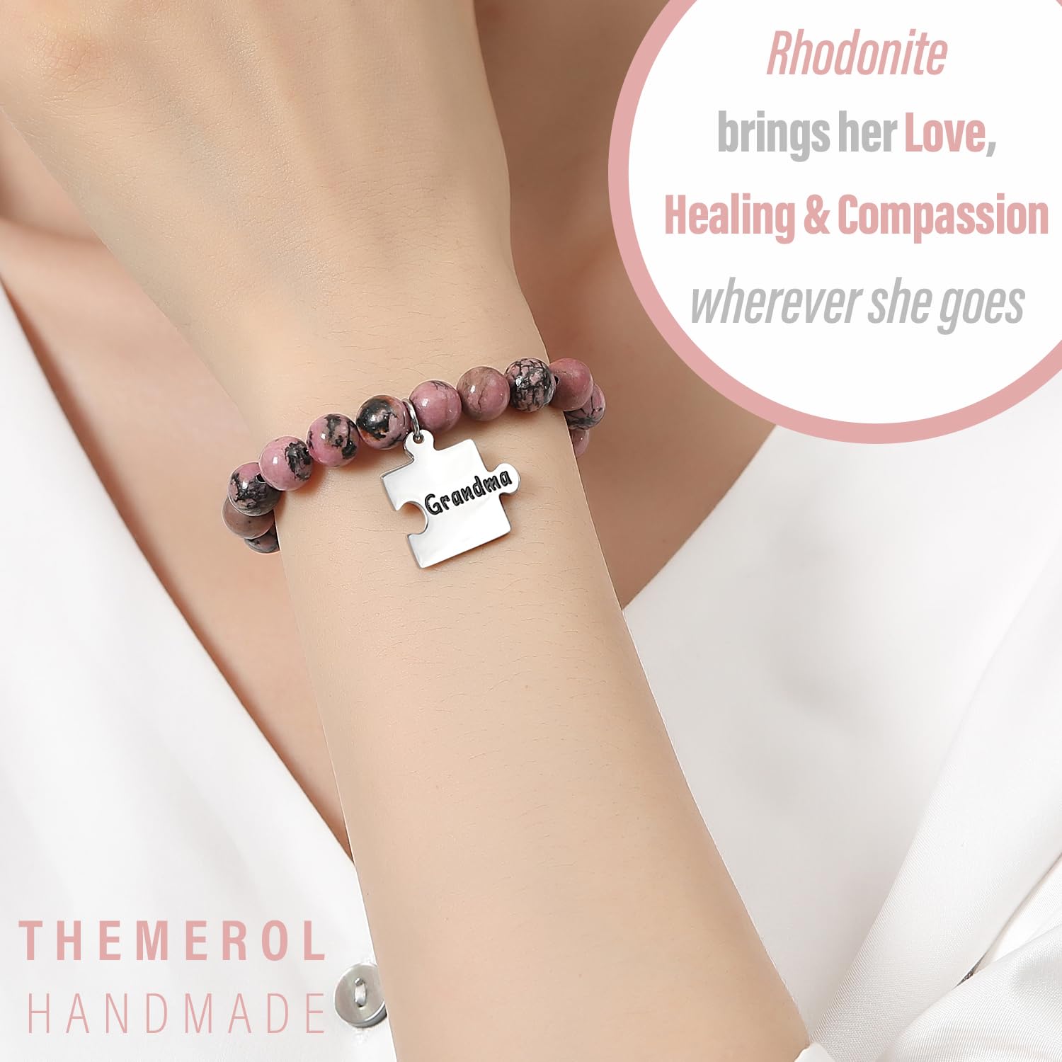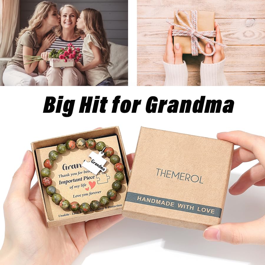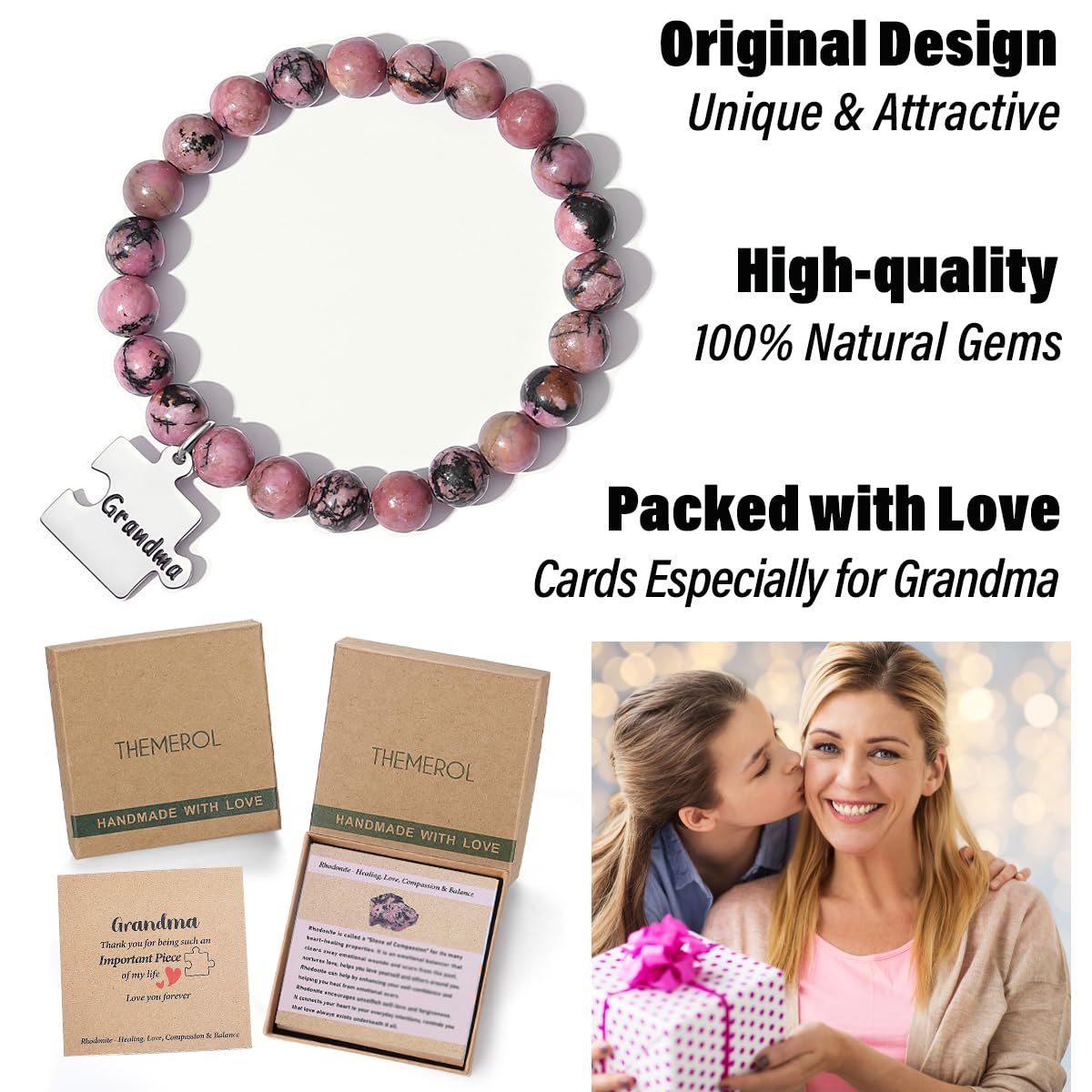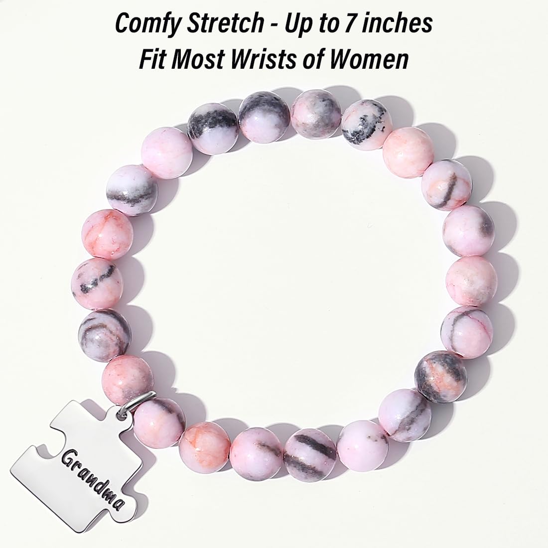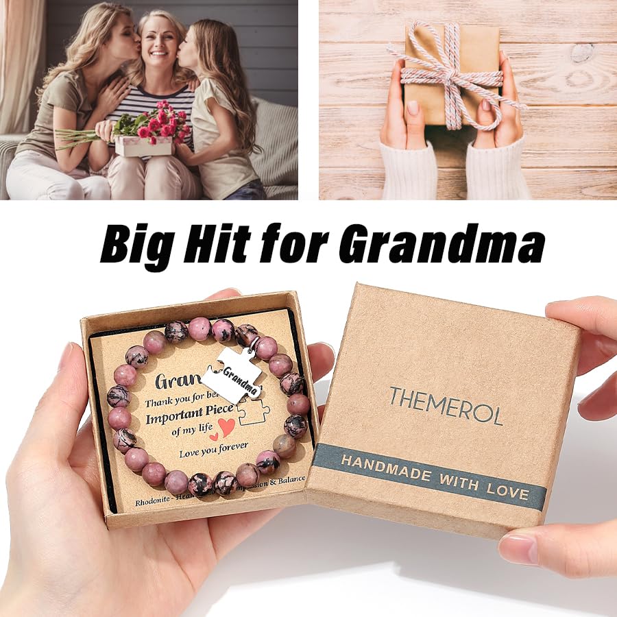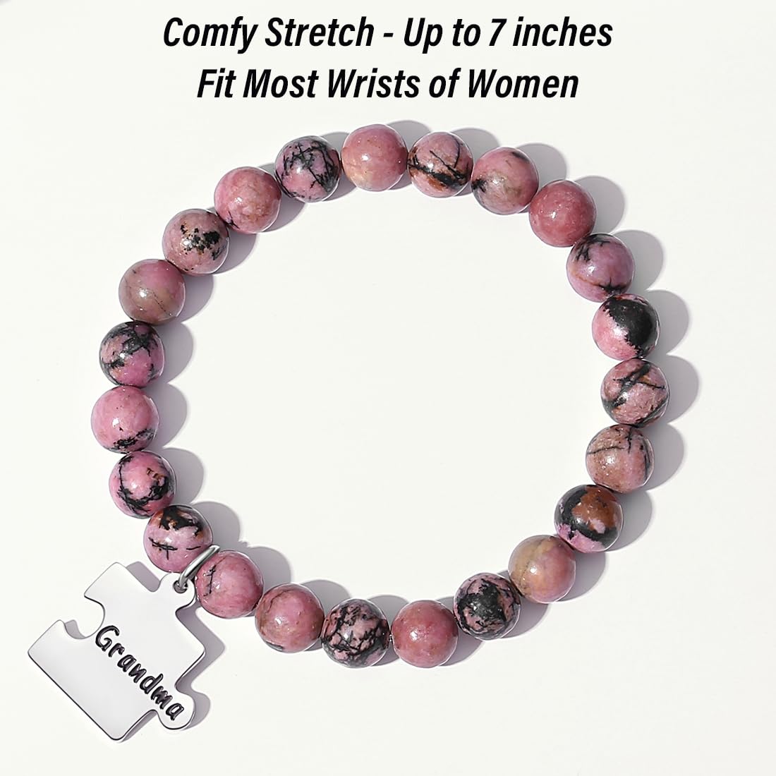 - 【Great Mothers Day Gifts for Grandma】 This handmade bracelet for grandma has an anti-tarnish charm engraved "Grandma", a double-side card with message "Grandma, Thank you for being such an important piece of my life. Love you forever" and the benefits of the stones. The Pink Zebra Jasper brings her calmness and helps grandma find her balance in life. This bracelet for women is great as mothers day gifts for grandma, birthday gifts for grandma, great grandma gifts ideas, gifts for grandma gigi.