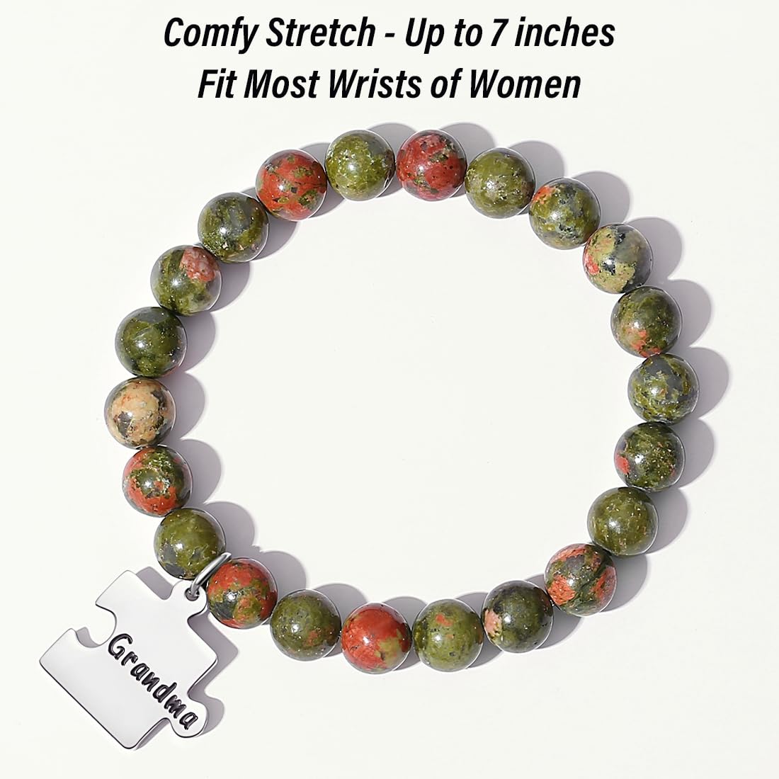 - 【Unique Design & Solid Craftsmanship by Great Artisan】Every natural bead is high quality genuine gemstone and has been carefully selected manually one by one. Original design and coming with meaning card which is especially for grandma makes your gift unique and a big hit to her. Solid Craftsmanship make sure it's super comfortable for daily-wear and will not easily fall off/come apart. This meaningful and beautiful crystal bracelet can be worn and protect her for a long time.